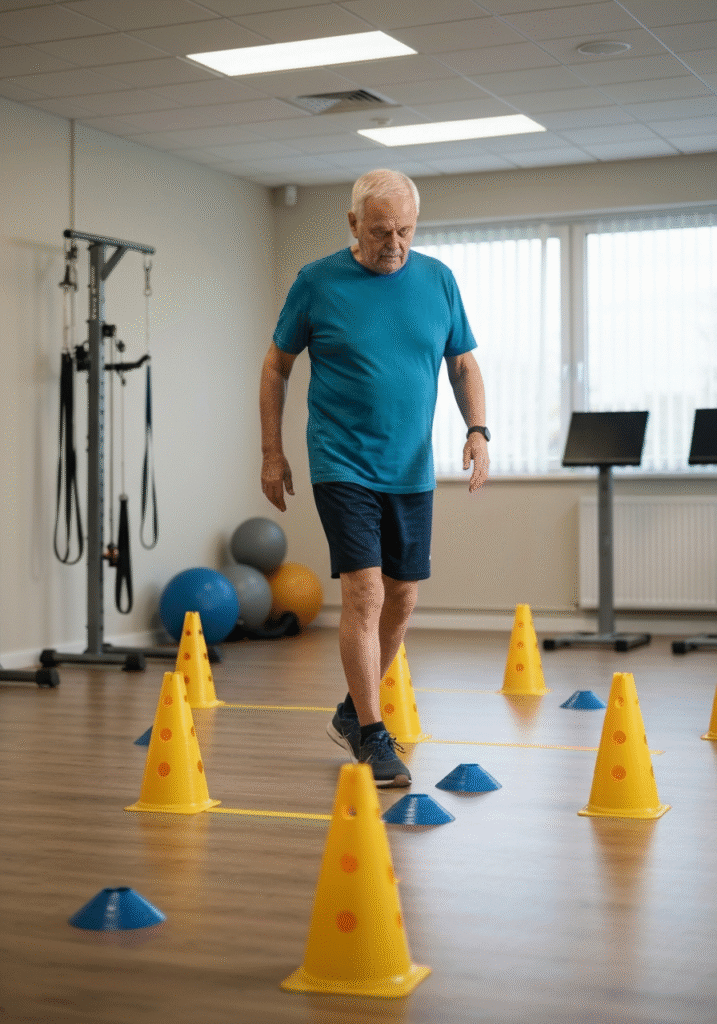 Com exercícios de equilíbrio, coordenação e ajuste postural, o foco é restaurar a confiança e a estabilidade ao caminhar.